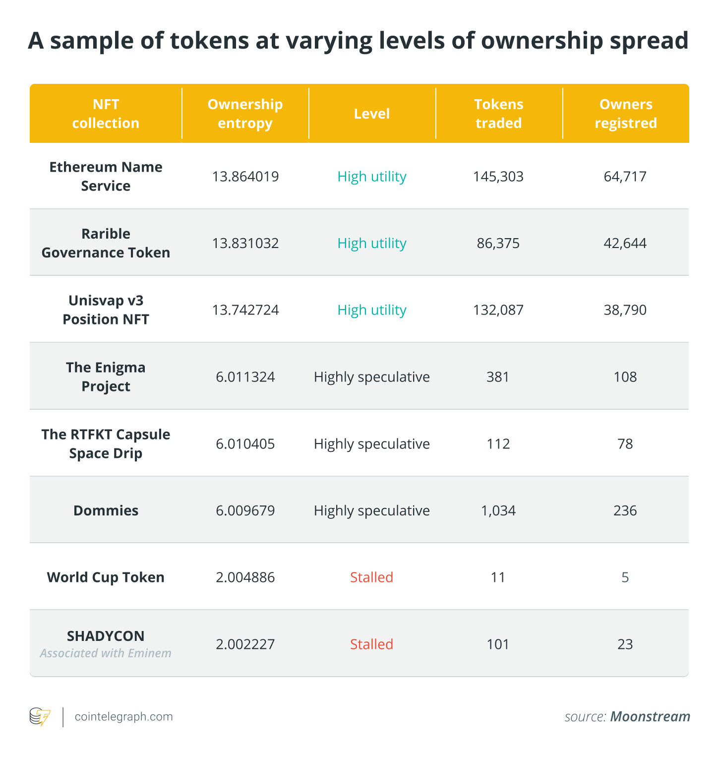 Even though the Moonstream data looks at the broader $NFT market, it seems to support Barabási’s analysis that, for the higher-end, intrinsically-valued crypto art market, there is a small, tight club of whales who own the majority of the NFTs. Many of these owners are collectors and marketplaces. But, the report also noted that the barrier to entry for the $NFT market is low, and disbursement of $NFT ownership is correlated to the level of extrinsic utility of the $NFT.
