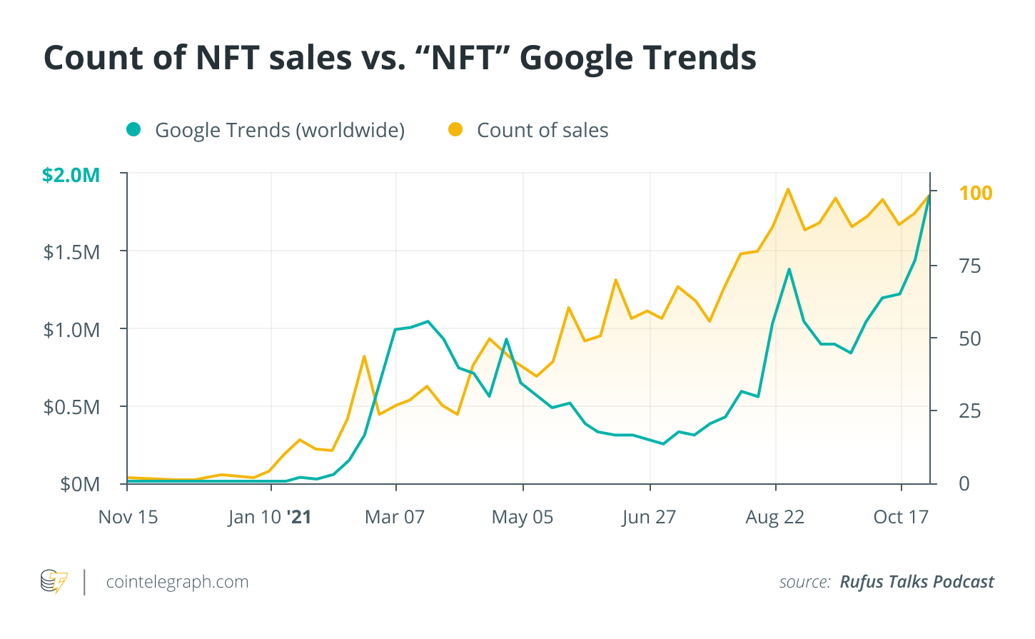 “What we are seeing with NFTs is the emergence of an entirely new audience of traders into the space, driven by possibly the most friendly on-ramp to crypto ever seen,” Pedro Herrera, senior blockchain analyst at DappRadar, told Cointelegraph.