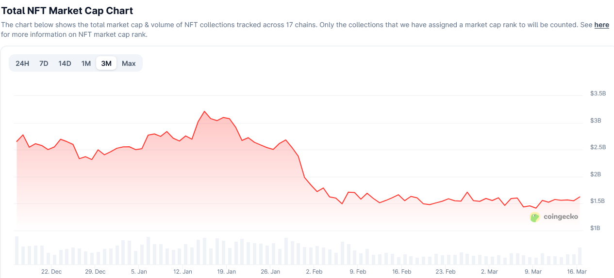 Change in $NFT market cap over the last three months. Source: CoinGecko