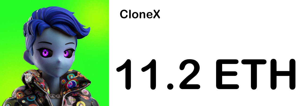 Lastly, the fifth most expensive floor today comes from the Clonex NFT collection. Currently, the floor price for a Clonex NFT is 11.2 ether or just over $29K. 8,543 unique addresses own at least one Clonex NFT out of the 19,065 NFTs available.