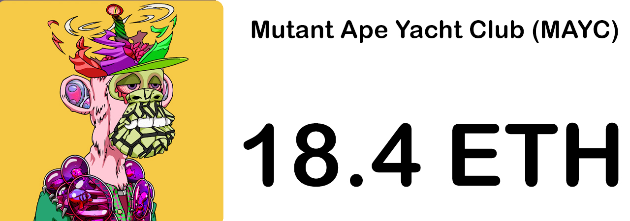 The third most expensive NFT floor price is much lower than the BAYC and Cryptopunks floors, as the Mutant Ape Yacht Club (MAYC) NFT floor is only 18.48 ETH or $47,882, using current ether exchange rates. The Yugo Labs NFT collection MAYC has 11,861 owners and there are 17,997 MAYC NFTs available today.