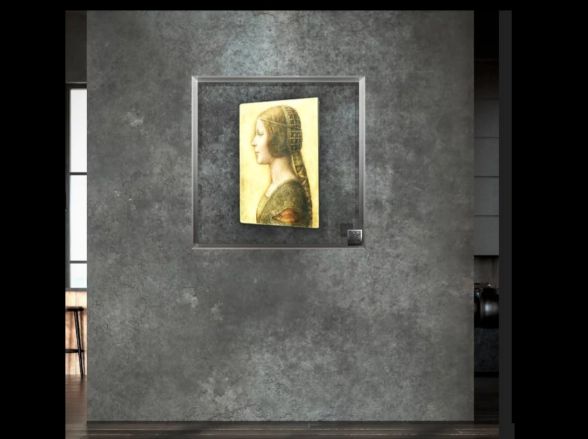 La Bella Principessa is a portrait of a young Milanese aristocrat in a beautiful renaissance dress. The original canvas was scanned into a multi-gigabyte photogrammetry image. The viewer can zoom in and see more detail than the naked eye can see. The unique 1:1 hologram will be encased in a crystal case (73cm x 73cm x 12cm). The company says it will be delivered and installed with white-glove service.