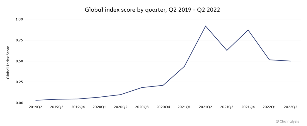 Across 154 countries, the Chainalysis quarterly adoption index matched this growth and subsequent deflation. Nonetheless, the global adoption level is still well above the summer of 2020 investing frenzy.
