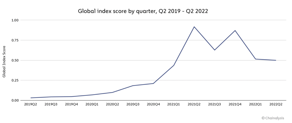 “[adoption rates] have fallen in each of the last two quarters as we’ve entered a bear market. Still, it’s important to note that global adoption remains well above its pre-bull market 2019 levels.”