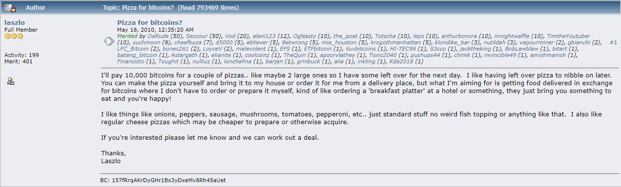 Today marks the 9 year anniversary of one of the first major Bitcoin transactions to be recorded, the infamous 10,000 BTC transaction that saw programmer Laszlo Hanyecz purchase two Papa John's pizzas for what was, at the time valued at roughly $40.