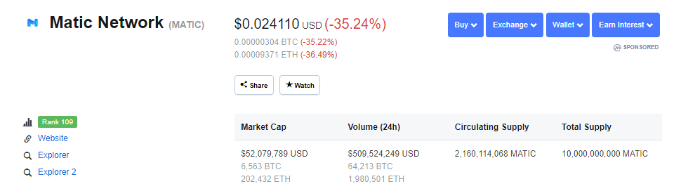 Perhaps you are super salty because you missed the recent MATIC pump which saw the coin fly 1000% in 10 days. Have no worry, you could purchase the entire circulating supply and have your own pump and dump party with 2.16 billion MATIC of your own