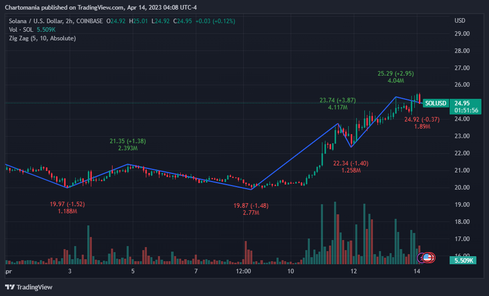 According to CoinMarketCap SOL, the native cryptocurrency of Solana blockchain is ranked as the 10th most traded cryptocurrency in the market. At press time, SOL was trading at $24.95 with a 24-hour trading volume of $970,840,812.
