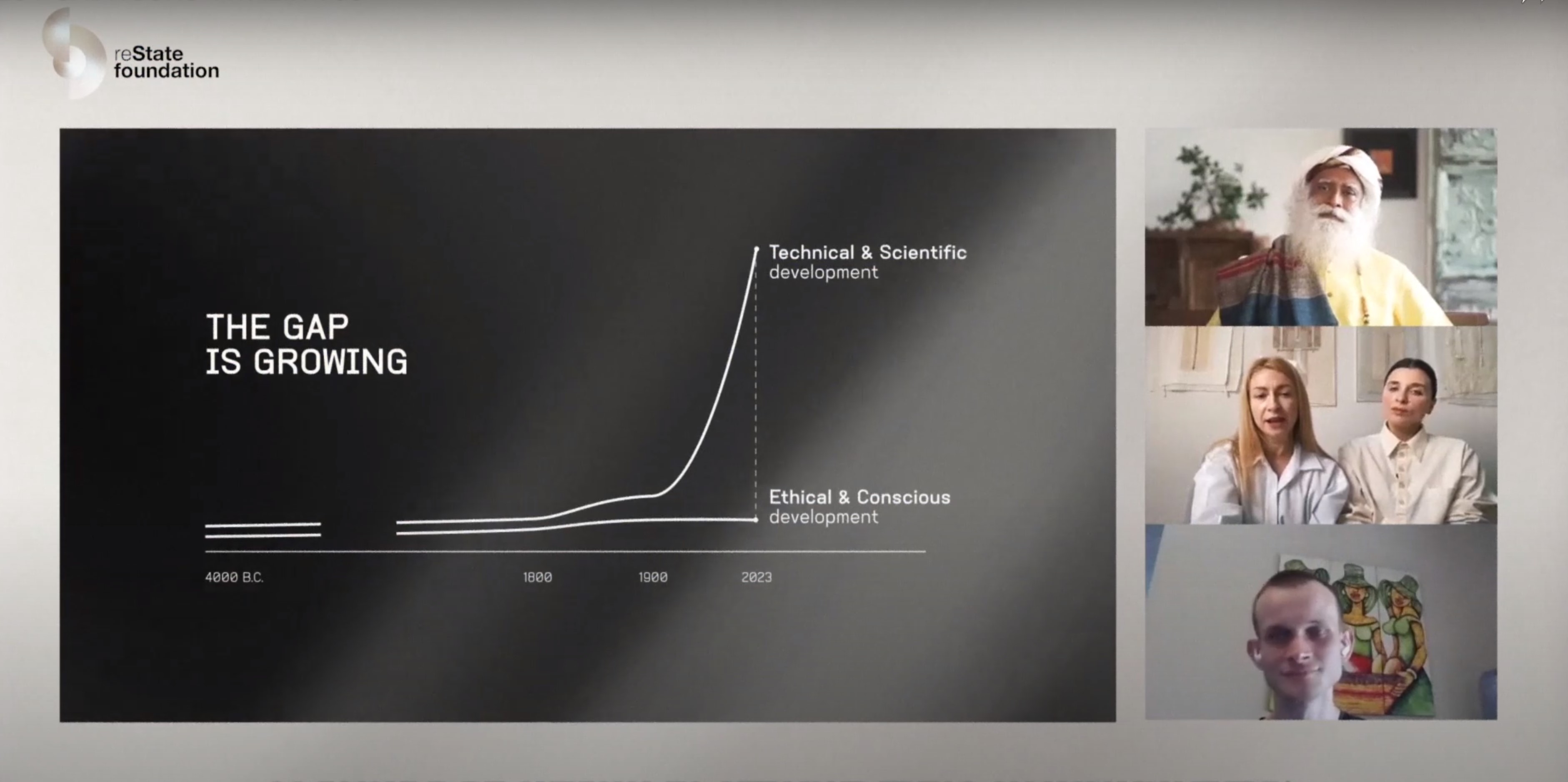 On April 25th the reState Foundation hosted a virtual talk between co-founder and inventor of Ethereum Vitalik Buterin and founder of the Isha Foundation, the Indian mystic Sadhguru to discuss the intersection of technology and human consciousness.