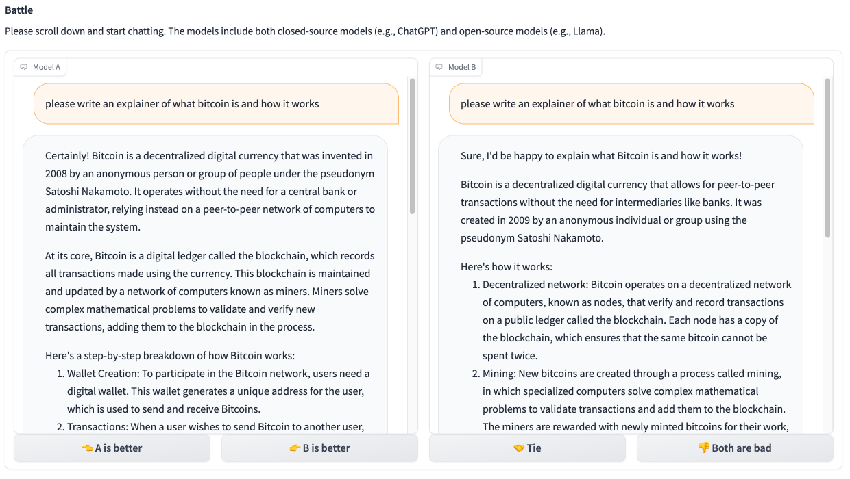 To rank the models, the LMSO makes them “battle” in matches with similar prompts. The model with the best answer wins and the other loses. Users decide who wins based on their own preferences, but they never get to know which models are competing.