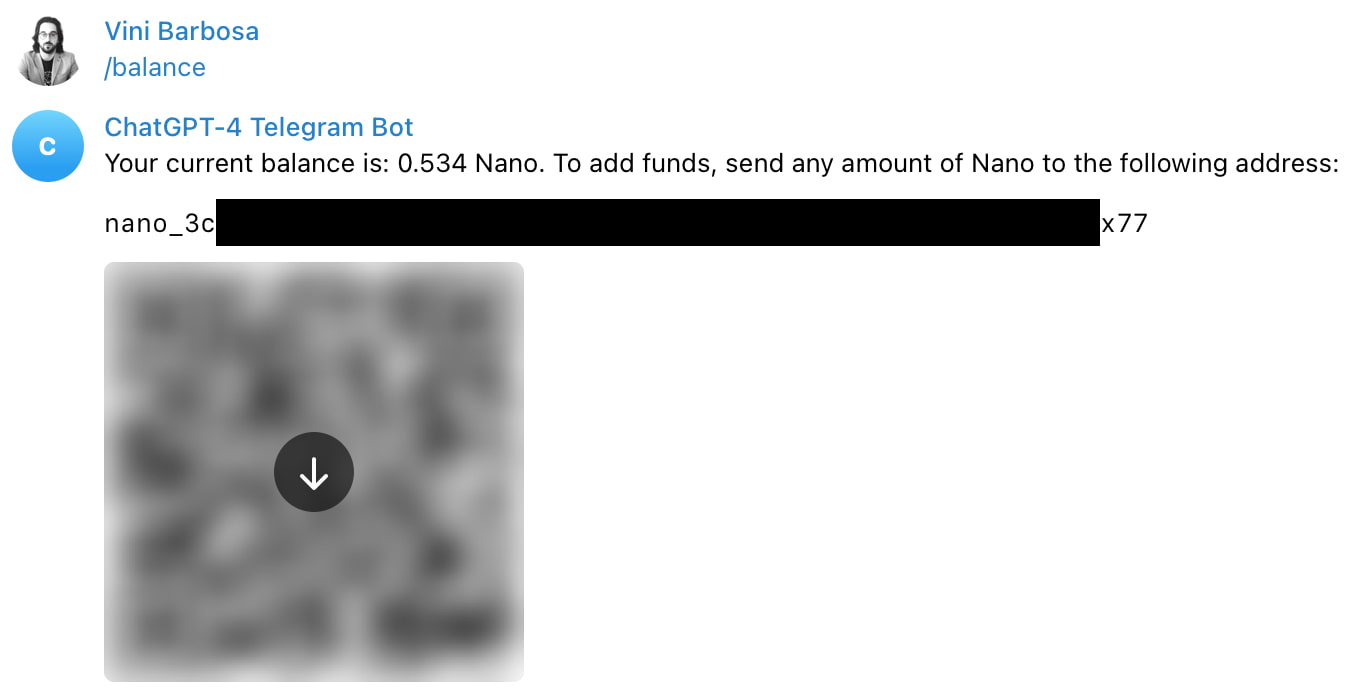 By using the command ‘/start’, the bot will give further instructions for its use. All commands are free of charge, according to Mira Hurley, but as a paid service, users will need to deposit the cryptocurrency Nano (XNO) through the command ‘/balance’.