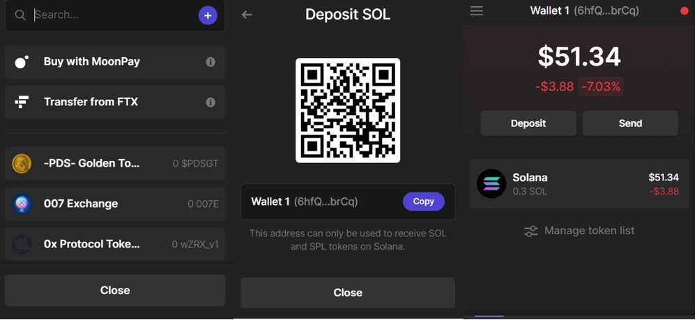 Since the wallet allows you to access the Solana network, users are required to have an SOL token in their wallet to pay the network fee. You can get the Solana (SOL) token from many different exchanges like Binance, Coinbase, FTX, etc. Check the full list of markets here