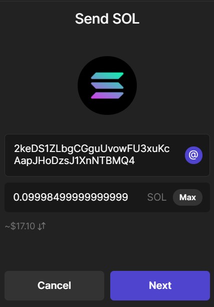 Using the send option, you can transfer your tokens to other wallet users.