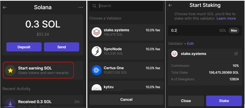 The Phantom wallet allows the users to stake their SOL tokens from the wallet interface.