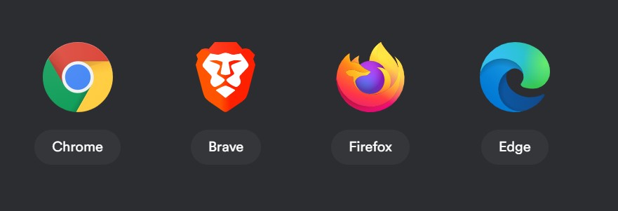 The wallet application currently supports Google Chrome, Brave, Firefox, and Edge browsers. Users need to install and set up the application in their browser and access it.