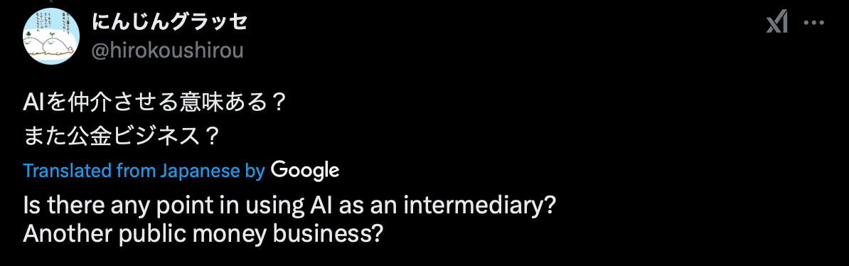 Social media responses to the Nikkei article on Anno were mixed, as residents of Japan seem to think there are much more important matters to attend to. One user even questioned (translated by Google): “Is there any point in using AI as an intermediary? Another public money business?” Still, other commenters said the idea was “amazing” and expressed interest in getting the AI tool in place.