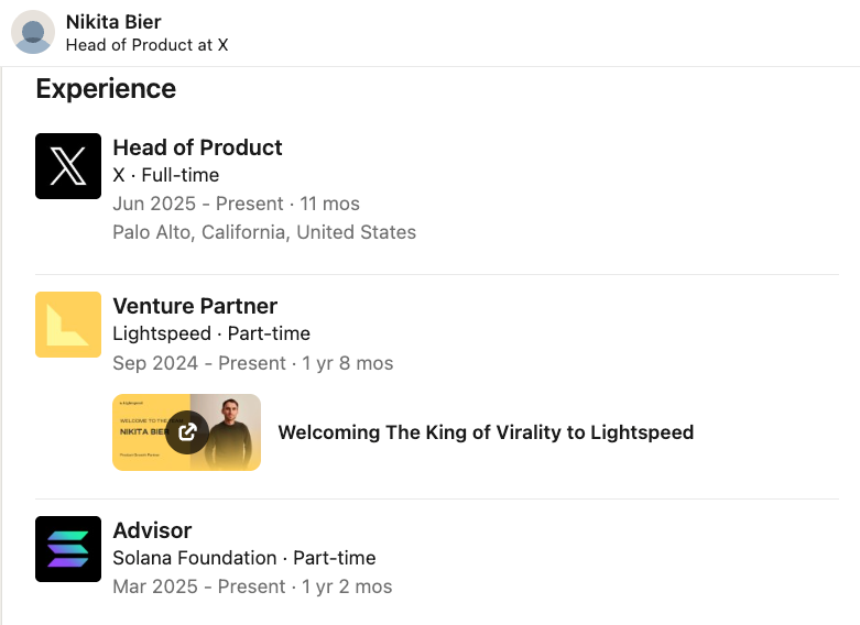 Nikita Bier joined X as head of product in June 2025, months after taking on an advisory role at the Solana Foundation in March.