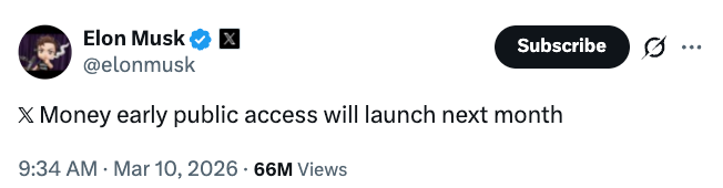 The post drew attention because it came just weeks before the expected launch of X Money, a payments and digital wallet product that Musk has presented as part of his plan to expand X into a broader financial platform.