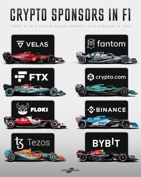 As many as six cars of the different teams were sponsored by cryptocurrency companies, including Binance, Bybit, Fantom, FTX, Crypto.com, Tezos and others.