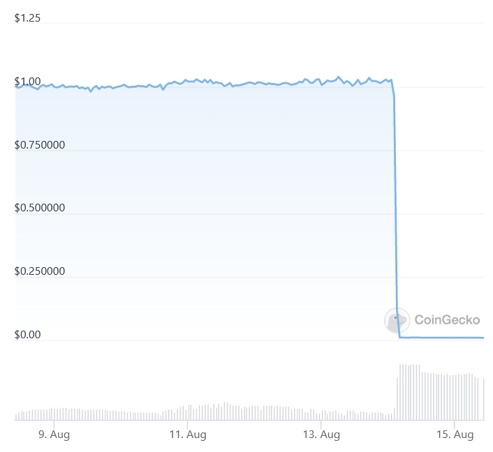 The incident saw the network's Polkadot (DOT)-based stablecoin Acala Dollar aUSD lose its dollar peg and plunge by more than 99%. On Monday morning at 7:20 UTC, aUSD is trading at USD 0.00898, down by 9% over the past 24 hours and 99.1% in a week, according to CoinGecko.