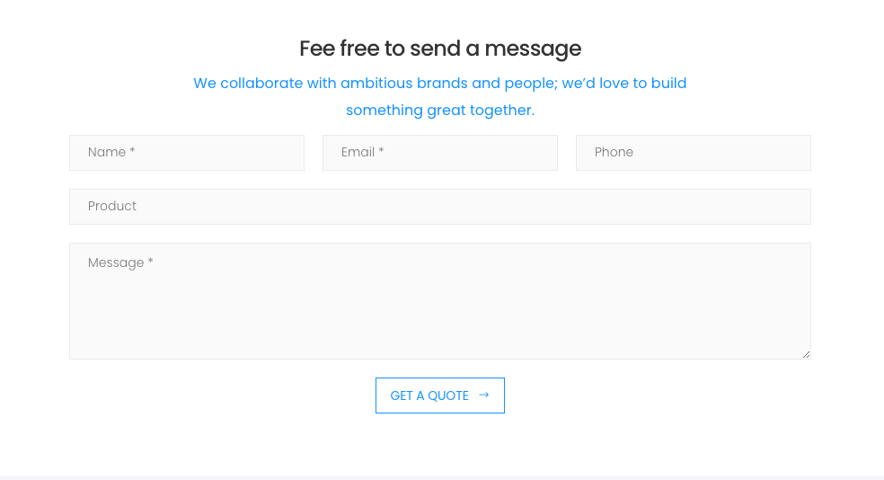 Clicking on any item, for example, a $1,199 price-tagged MacBook Pro with a 13’ display, leads to a “Get a Quote” page, where one could leave his message and contacts on the website. As the text on the page goes, “We collaborate with ambitious brands and people; we’d love to build something great together.”