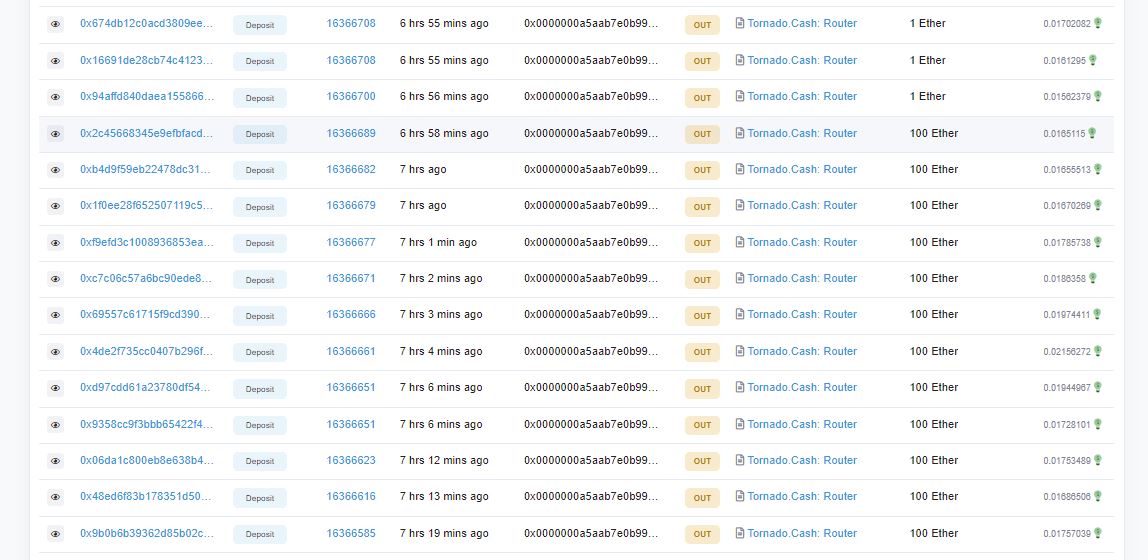 In an alert, blockchain security firm CertiK flagged that a wallet address affiliated with the Nomad hack has transferred 1,200 ETH into Tornado Cash, suggesting that the attackers may be cashing in the funds. The hacker transferred 12 batches of 100 ETH to the sanctioned mixer.