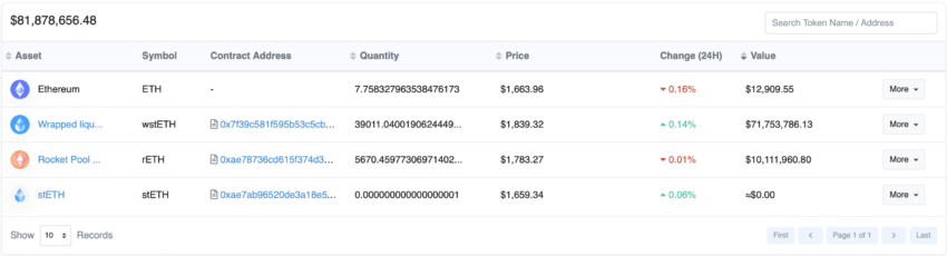 The 0x5313 is now one of the largest holders of staked Ethereum, with over $82 million in liquid staked ETH from the top two platforms. This includes 39,000 wrapped LDO, stETH, and 5,700 RocketPool staked ETH.