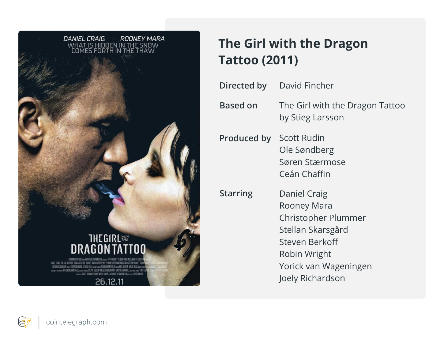 The film is based on the first novel in the “Millennium” trilogy by Stieg Larsson, and it tells the story of a journalist who teams up with a young computer hacker to solve a decades-old mystery.