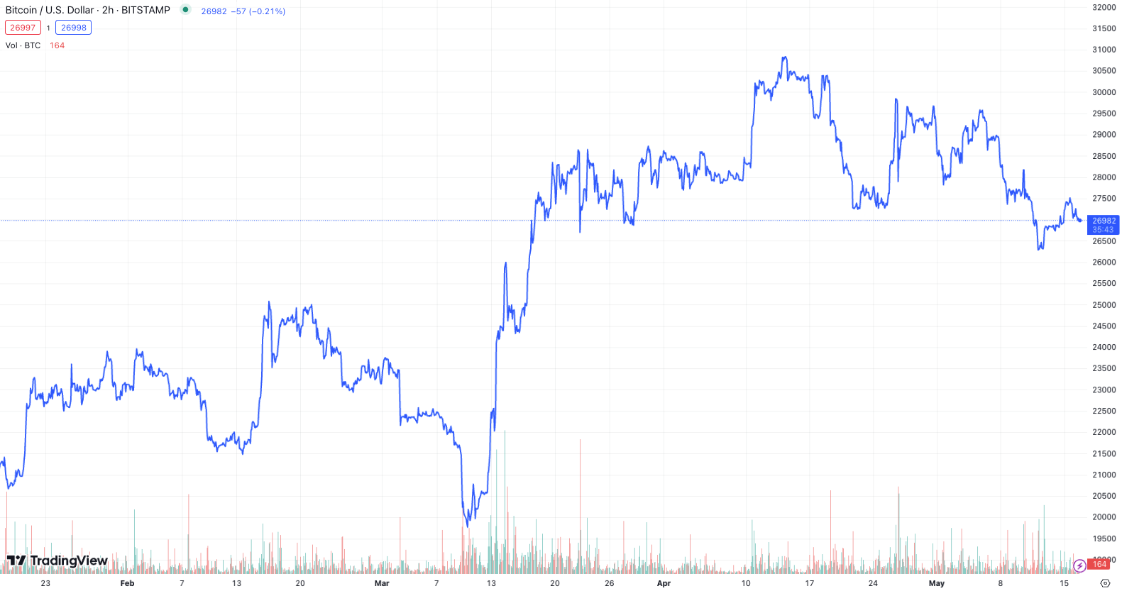 Bitcoin (BTC) has been tracking stable price action, as users ponder the security of their cold storage. | Source: BTC:USD on TradingView.com