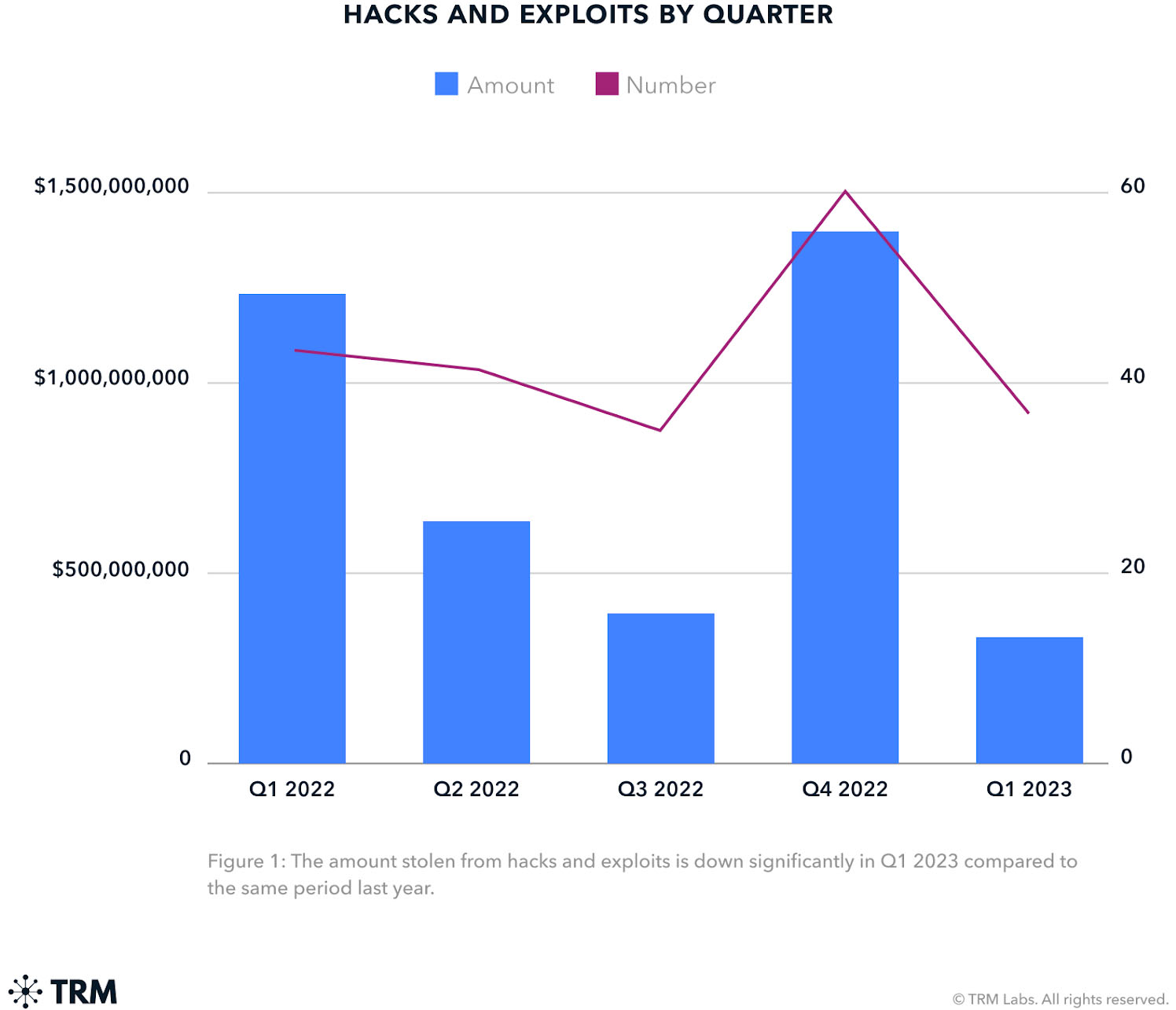 “The amount stolen and number of incidents in the first quarter of 2023 mirrors that of the third quarter of 2022. That was followed by a record-setting number of hacks that turned 2022 into a record year,” TRM added.