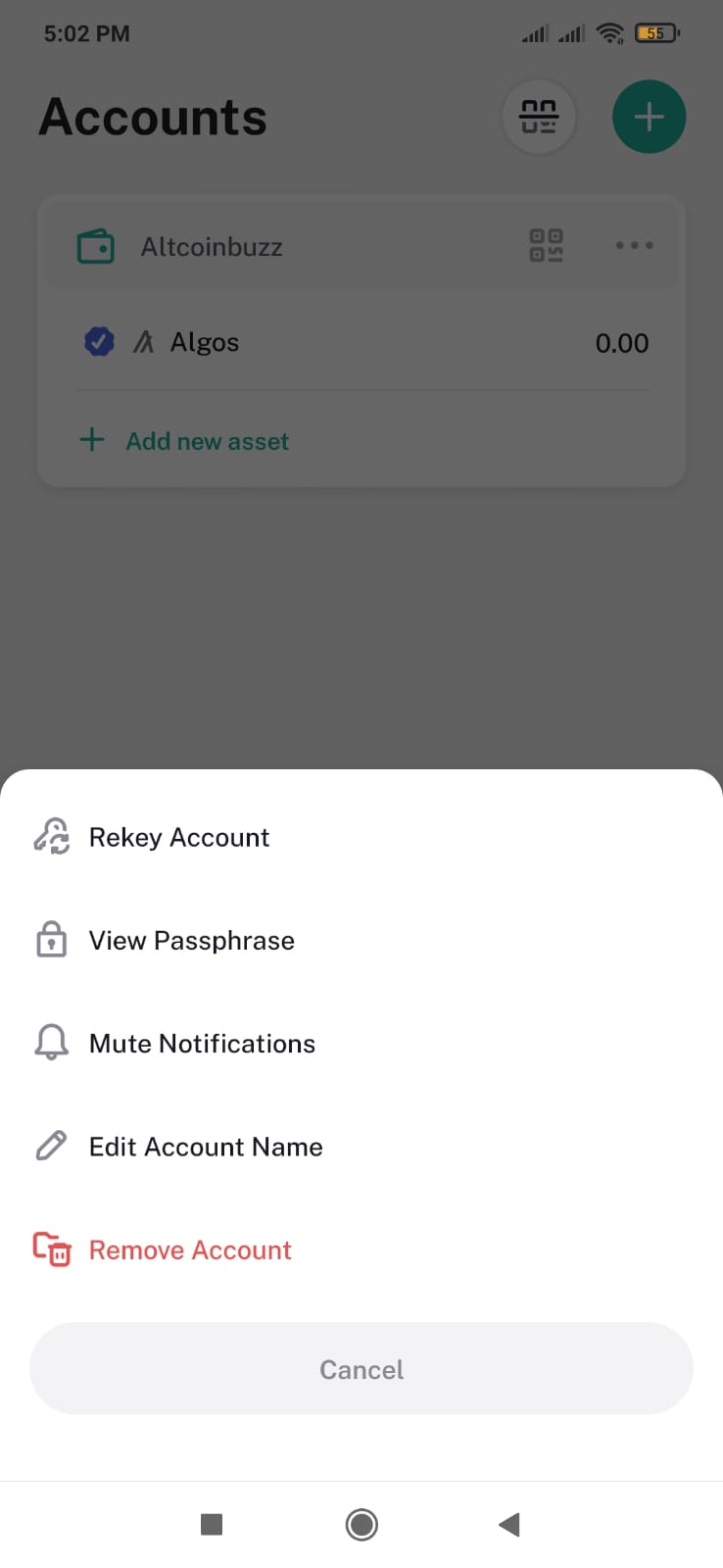 - View Passphrase: Check your backup phrase