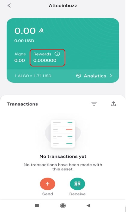 As we have mentioned earlier, users will receive an $ALGO token as a reward by simply holding it in their wallets. Therefore, rewards will be visible under the ALGO token balance in a separate section.