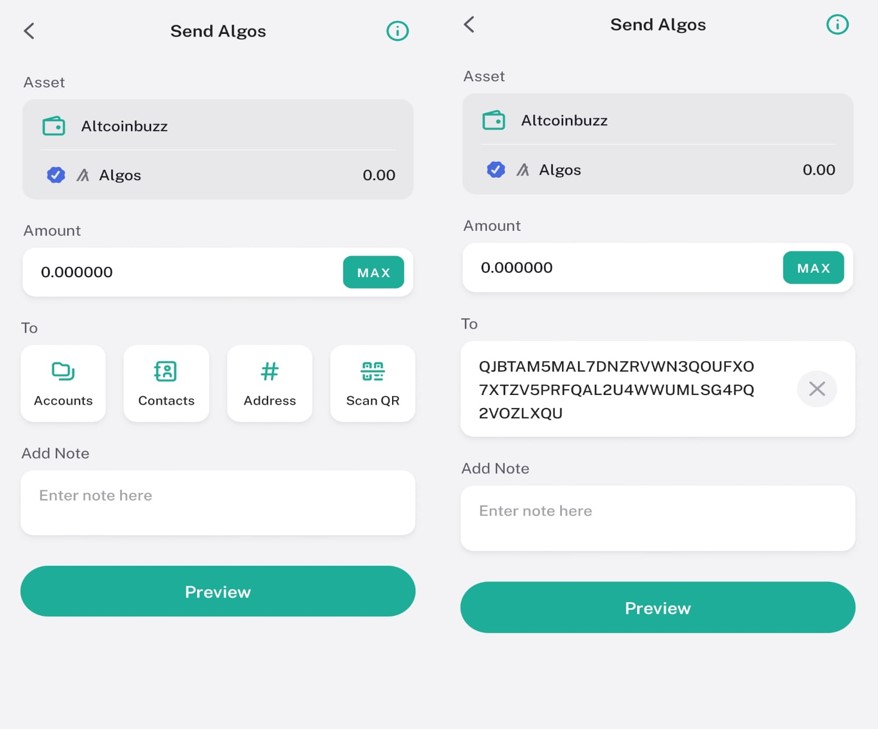 Therefore, users can select any of the above options to enter the recipient address. Next, the wallet will ask you to fill in the amount of token that you wish to transfer and a note (if any). Finally, preview your details and confirm the transactions.