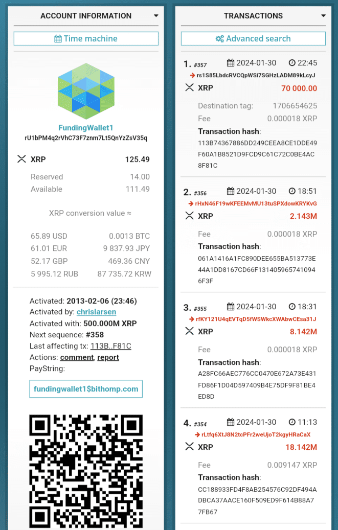 Moreover, an extensive look at rU1bPM4 shows that the address belongs to Larsen. Interestingly, this address also saw outflows to multiple addresses belonging to the hackers during the hack. These outflows amounted to over 28 million XRP from 11:13 to 22:45 (UTC) on Jan. 30.