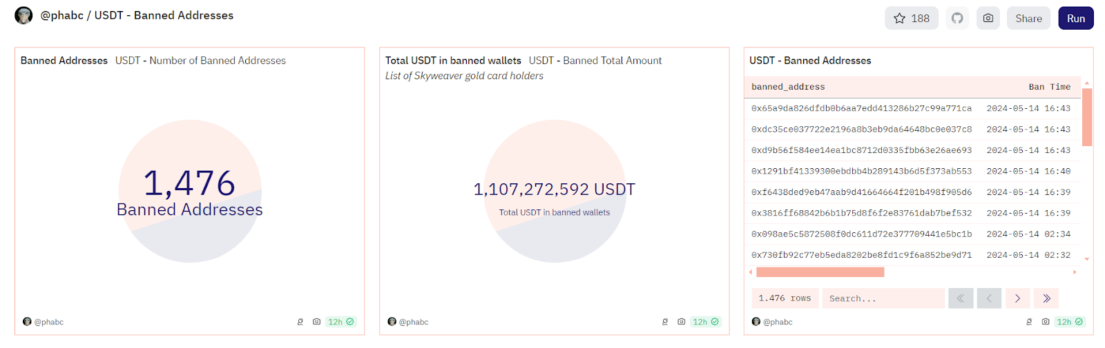 At the moment we can count a total of 1,476 addresses added to Tether’s Black List, for a total of 1.1 billion USDT blocked.