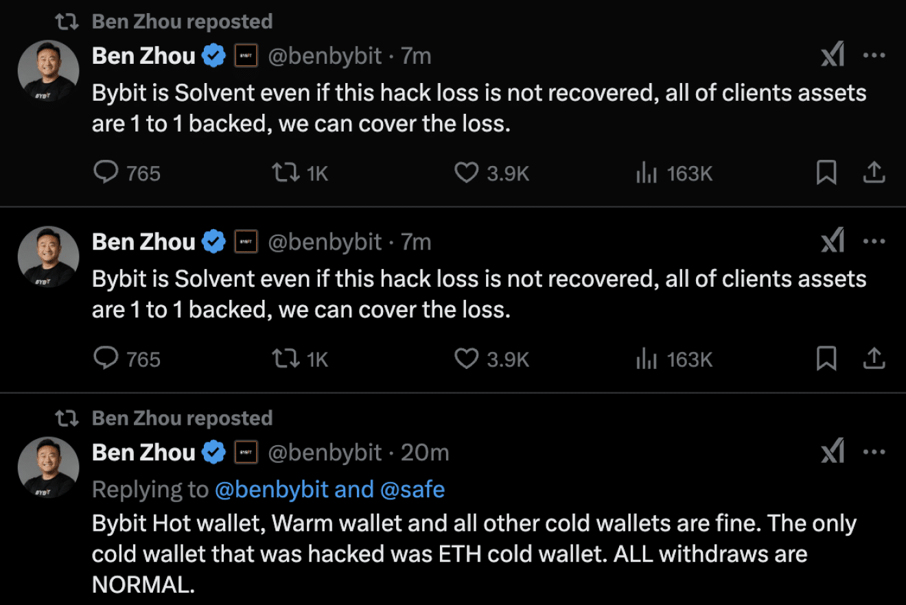- Bybit CEO Ben Zhou confirmed the platform hack as he tried to calm the storm.