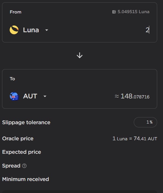 You can see the wallet landing page with the two native tokens (LUNA and UST).