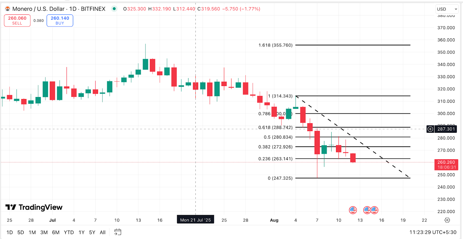 Earlier today, XMR even popped up on the top gainers list for a short while before losing steam again. Now the price sits around $264.