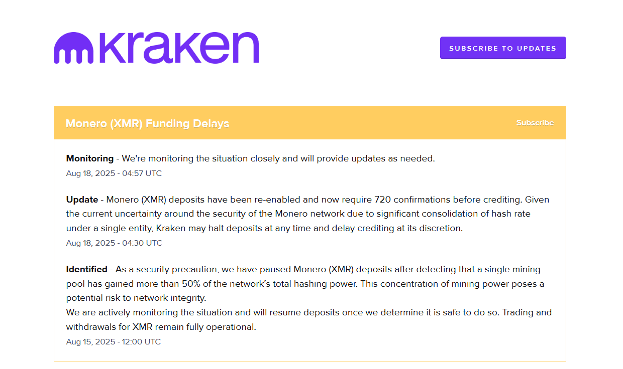 The fallout was very quick. Crypto exchange Kraken temporarily halted Monero deposits due to risks to the network’s integrity. Withdrawals and trading, however, remained active, and the exchange promised to resume deposits once it deemed the network safe again.