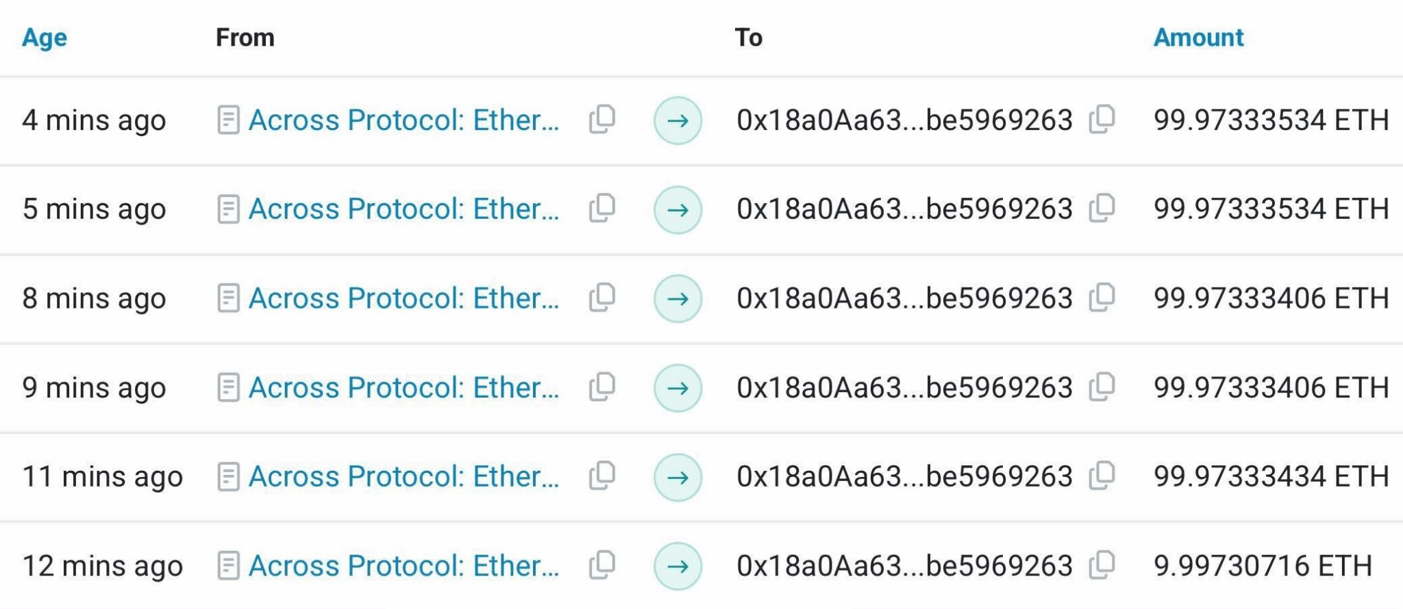 Half of the stolen funds on Unichain were swapped to ETH and bridged to Ethereum in 100 ETH bridge transactions through the cross-chain bridging platform Across Protocol.