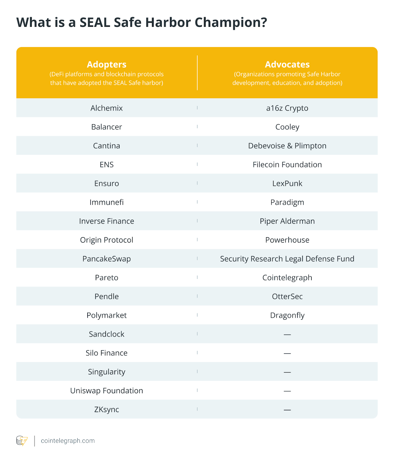 Three years later, SEAL is now recognizing 29 crypto companies for adopting and supporting its Safe Harbor Agreement as part of its very first Safe Harbor Champions 2025 awards.