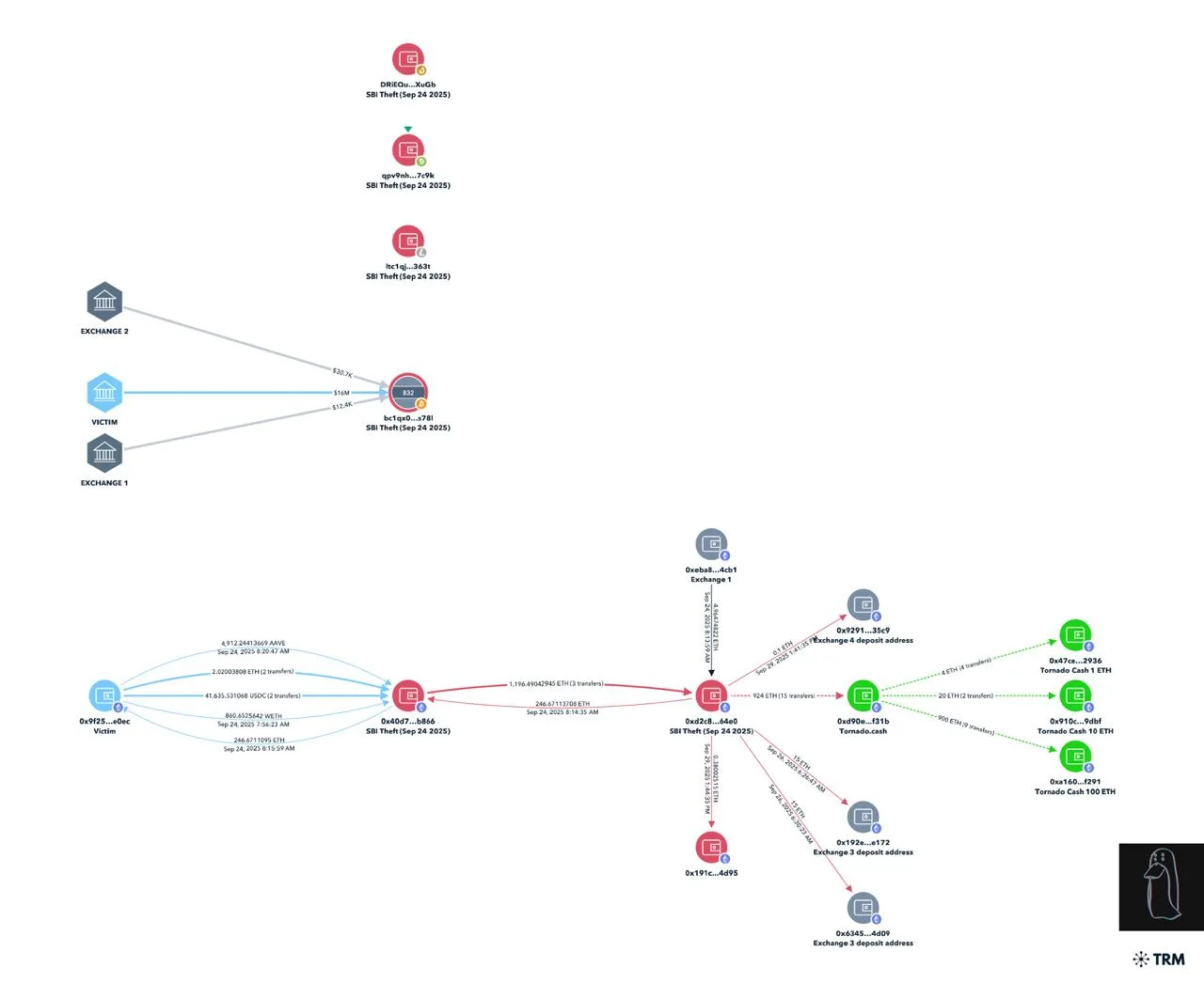 The stolen assets were first transferred to five "instant exchangers" and subsequently sent to the cryptocurrency mixer Tornado Cash.