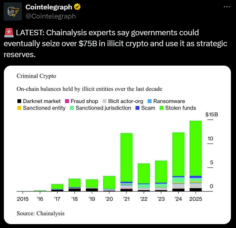 As the United States and other countries weigh the prospect of building national cryptocurrency reserves, new research from Chainalysis suggests governments may already be within reach of tens of billions of dollars in potentially recoverable onchain assets — a development that could intersect with those reserve discussions.