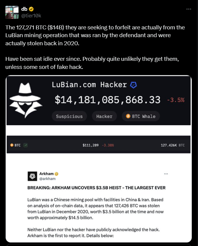 Some reports suggest these funds could actually be linked to the biggest crypto hack till date involving LuBian mining pool.