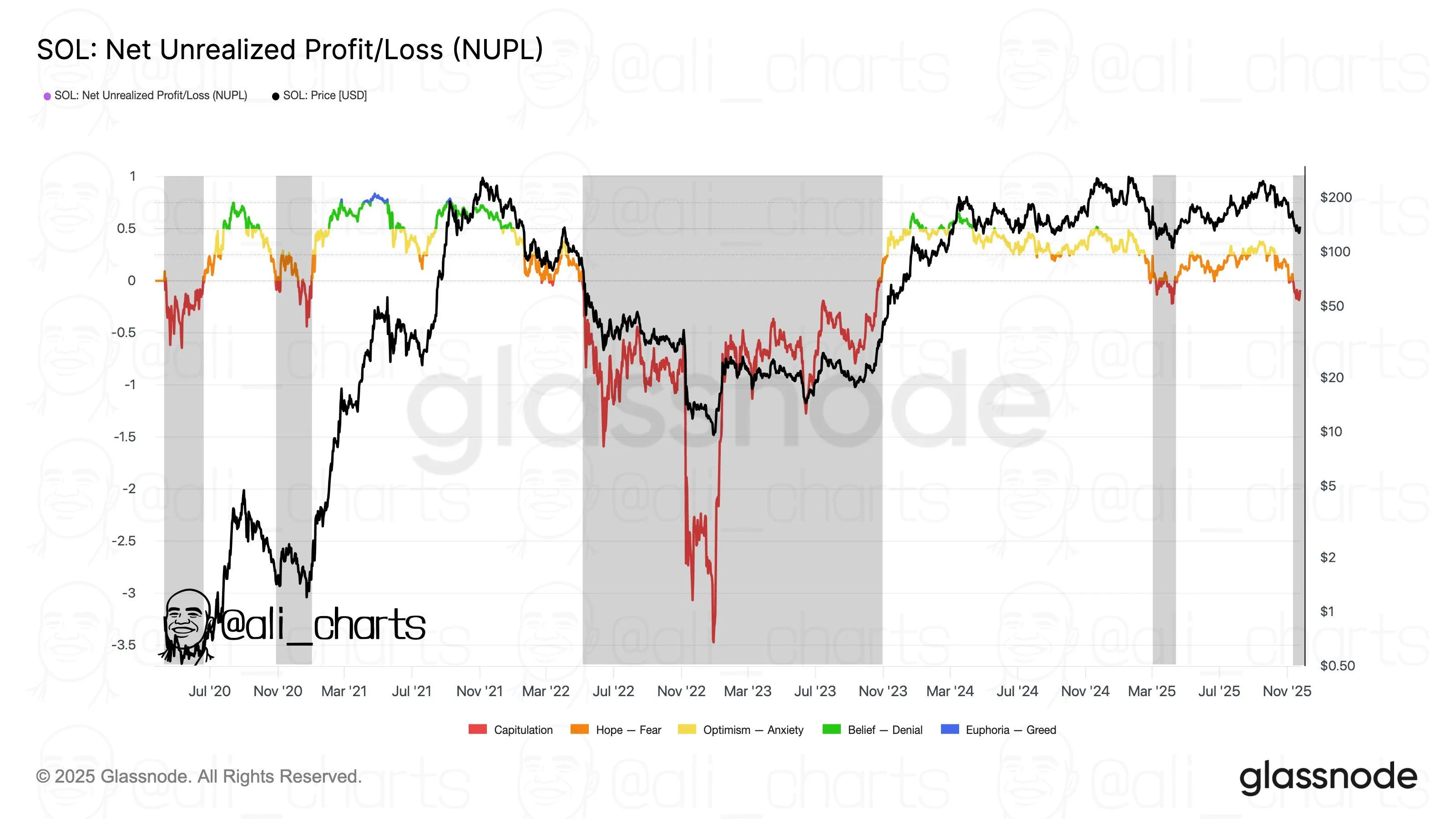 Solana’s market performance showed surprising strength even as the hack gained attention. SOL traded near $142, marking a slight daily gain. According to analyst Ali Martinez, Solana’s NUPL chart indicates deeper capitulation over recent weeks.