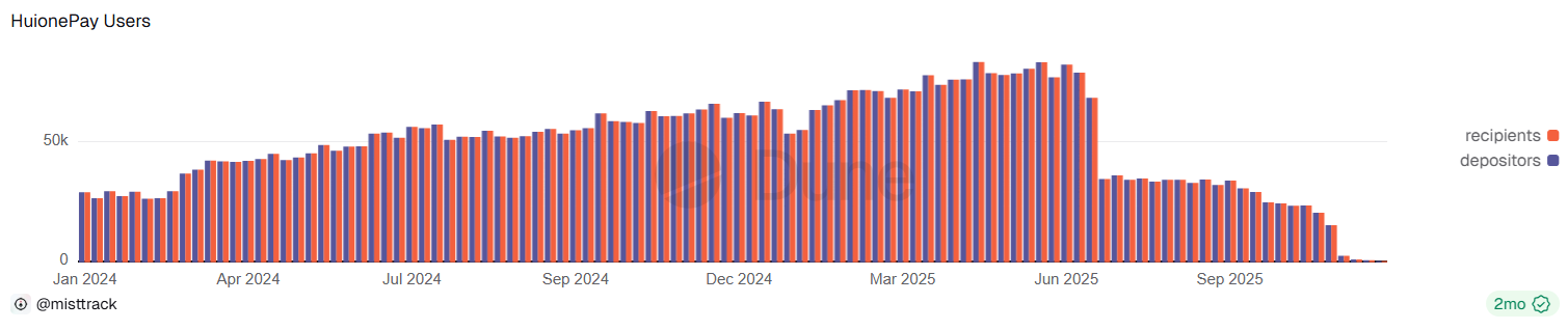 The activity of Huione Pay peaked in the summer of 2025, later stopping withdrawals and winding down following the crackdown from authorities. Huione Pay was one of the main tools for Telegram-based and online gambling, as well as $USDT laundering.