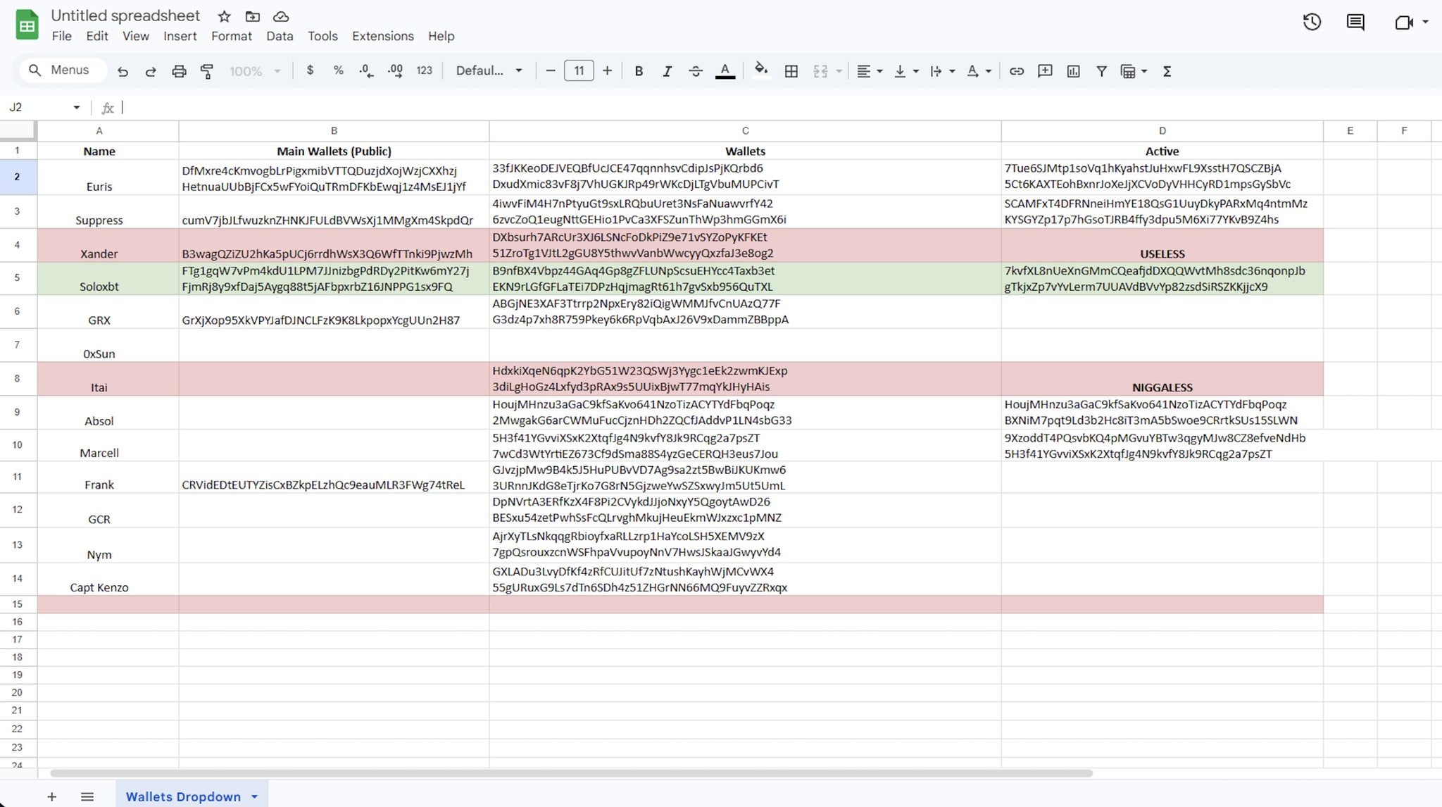 According to the findings, members of the group had compiled a Google Sheet cataloging wallet addresses associated with several influencer targets. Several individuals named in the leaked materials later confirmed independently that they were the owners of the wallet addresses listed in the document.