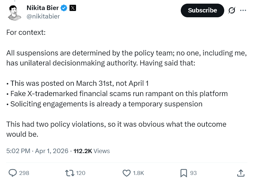 Product lead Nikita Bier said the system will flag accounts with no prior crypto activity that begin promoting tokens, triggering identity verification before further posts.