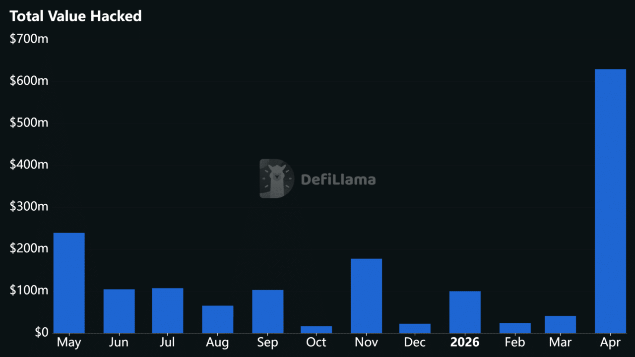 In April, the losses from the rising crypto hacks hit $629 million, according to data tracked by DeFiLlama. This was the highest level of monthly losses so far in 2026.