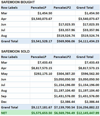 “Ben bought Safemoon on PancakeSwap for a total of $4M, while selling $16M. The net, according to our calculations, was that Ben profited roughly $12M on Safemoon.”