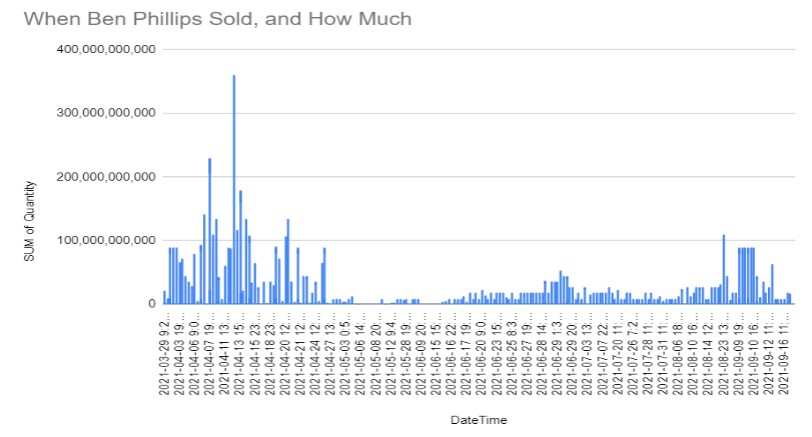 To prove his point, Findeisen also created a chart that demonstrates Phillips’s selling behavior over time.